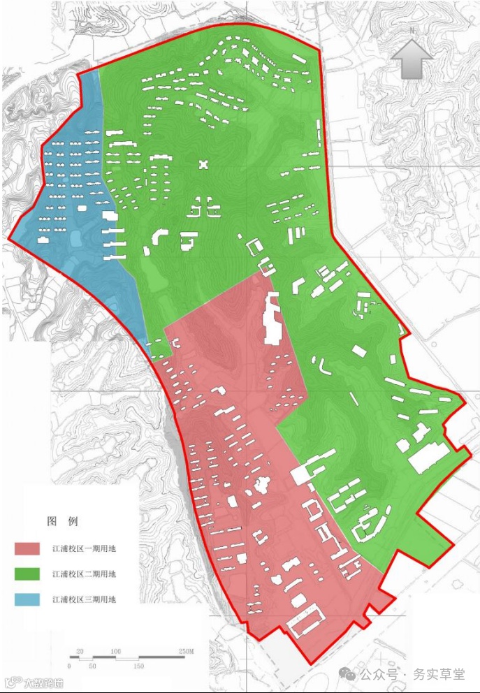 言而总之,在江浦校区27年校园规划的迭代过程中,大体上一脉相承,按照大致的功能簇群和特定的模式语言进行归纳布置;但同时也呈现出了一定的偶然性和随意性:有"见缝插针"式的填补,有"各自为战"式的拼贴,有"削山填湖"式的找平,有"急于求成"式的将就,有因为政府扩路不得已的边缘裁剪,还有高压线霸凌下不得已的委身适配……在多方因素的共同影响下,呈现出复杂多样性和阶段性发展的混合面貌,形成了如今层次丰富、棱角分明的特色校园空间。
