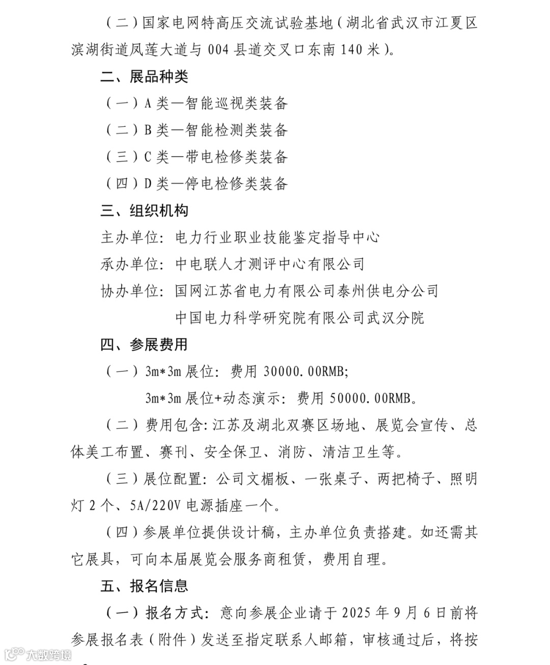 中国电力企业联合会(以下简称“中电联”)定于2025年9月19-22日举办电力行业架空输电线路智能运检作业创新技能大赛,按照《关于加强新时代高技能人才队伍建设的意见》(中办发〔2022〕58号])“赛展演会’结合办赛式”要求,为进一步加强职业技能竞赛的社会影响和品牌建设,广泛吸收社会资源支持、推动赛事顺利举办。经研究,决定同期同地在江苏与湖北召开架空输电线路智能运检作业创新技能大赛装备展览会,展会聚焦四个主题一智能巡视、智能检测、带电检修及停电检修,展示来自行业顶尖企业的创新产品与尖端技术。具体内容如下。