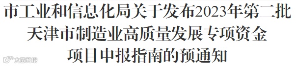 市工业和信息化局关于发布2023年第二批天津市制造业高质量发展专项资金项目申报指南的预通知