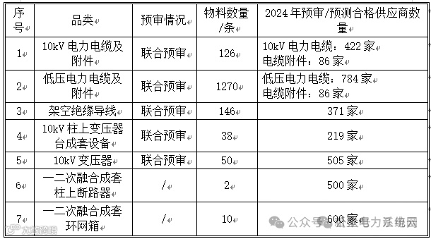 ①10kV电力电缆、低压电力电缆、架空绝缘导线、10kV及以下电缆附件、10kV柱上变压器台成套设备、10kV变压器6个品类应用2024年联合资格预审结果;评审细则应用2025年最新发布的公司物资类策略指导手册。