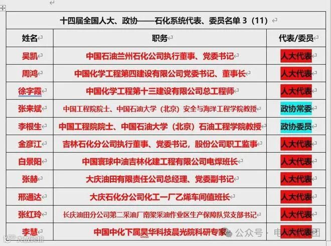 同时,相因到龄退休、人事安排等原因,部分来自央国企的代表、委员职务已发生变化。举例来说,章建华已被免去国家能源局局长、党组书记职务,王宏志为国家能源局局长、党组书记。就在2月14日,中国大唐原董事长邹磊已调任国家能源集团董事长、党组书记,中粮集团原党组书记、董事长吕军任中国大唐董事长。