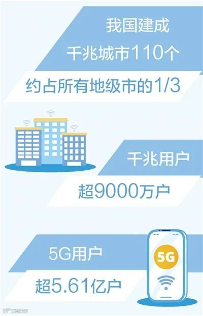 “双千兆”用户数持续增长。截至2022年底,我国千兆用户超9000万户,5G用户超5.61亿户。千兆城市平均5G用户占比达到38.9%,高于全国平均水平。