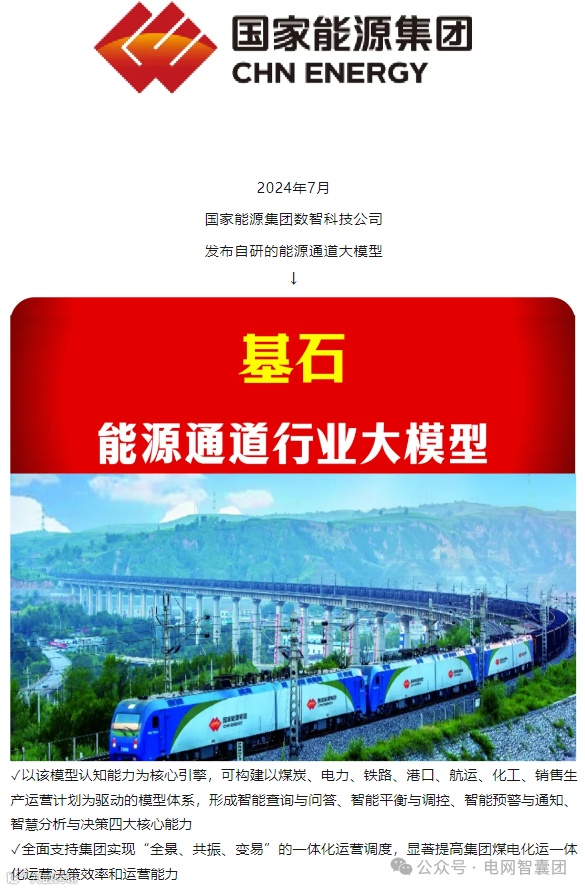 2024年7月4日,国家能源集团数智科技公司自主研发的能源通道大模型(基石大模型),首次在世界人工智能大会亮相展出。