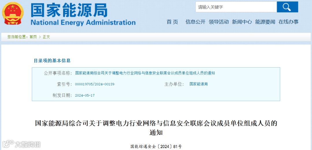国家能源局发布重要成员名单,事关电力行业网络与信息安全、并网电厂涉网