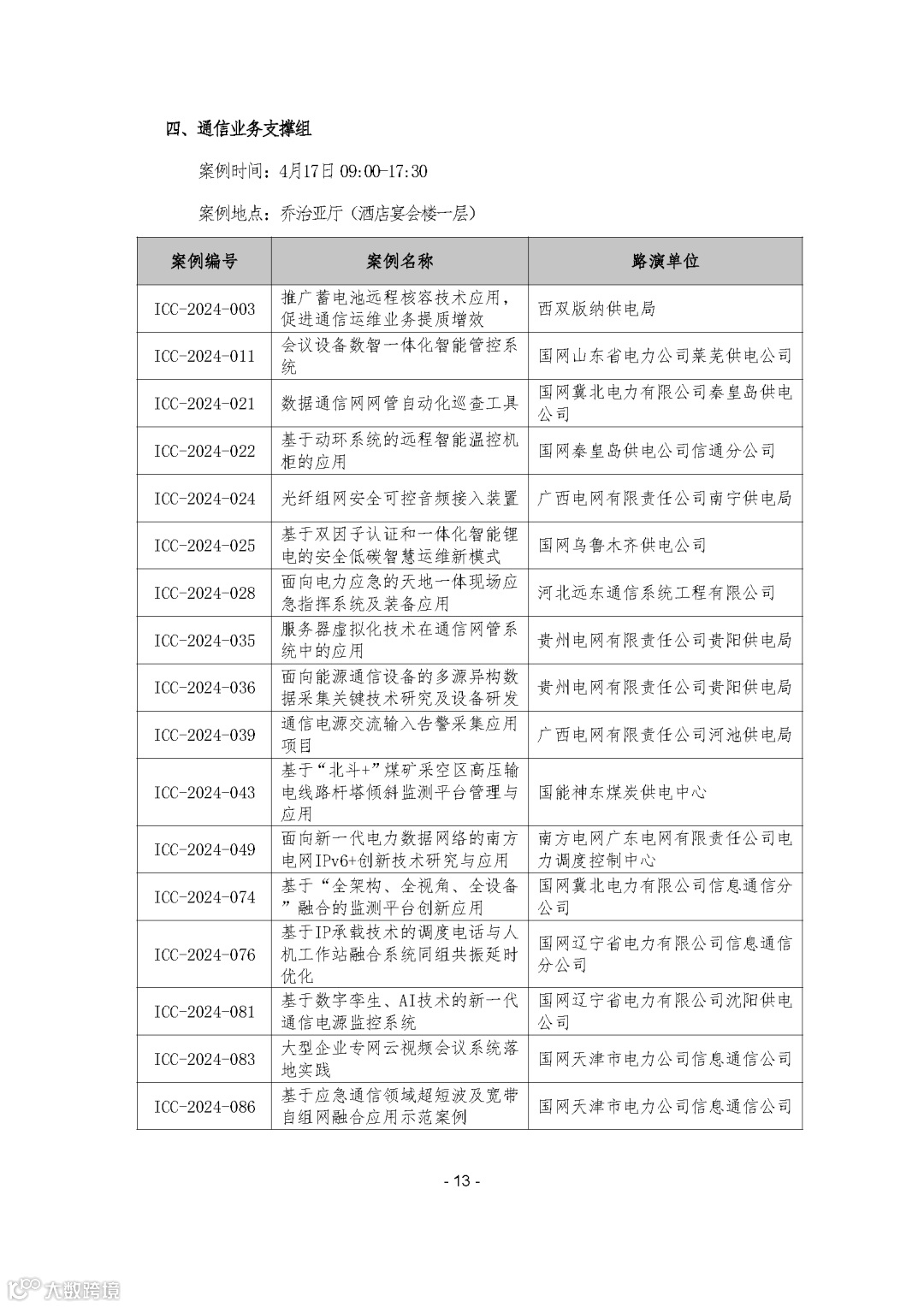 02 演讲要求:请将演讲PPT于2024年4月10日前发送至组委会邮箱:icc@cers.org.cn(邮件主题及文件名统一命名为:“案例分组+案例尾号+案例名称”,如:主配网通信组-004-电力通信接入网故障定位装置及定位方法)。