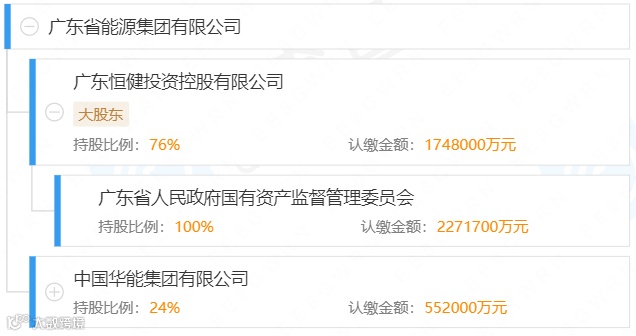 广东省能源集团成立于2001年8月8日,其前身广东省粤电资产经营有限公司是全国第一家因“厂网分开”电力体制改革而组建的发电企业,2003年更名为广东省粤电集团有限公司。2019年2月18日,正式更名为广东省能源集团有限公司。公司注册资本230亿元人民币,由广东省政府和华能集团分别持有76%和24%股权。
