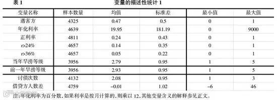 已有文献对高利贷超经济强制论进行了检验。Chen et al.,(2010)的研究就发现贷方的身份对利率高低的影响并不显著,这在一定程度上说明贷方不一定具备剥削借方的强制力地位。更多的文献则从信息经济学角度(Stiglitz & Weiss,1981;陈锋、董旭操,2004)、交易成本和市场机制等角度(Chen et al. 2010;彭凯翔等,2008),对高利贷的存在进行了基于现代经济学的解释,说明高利贷的存在并非主要因为贷方剥削,或者说高利贷是金融市场不发达、借贷契约执行成本太高、经济风险太高所致。Morse(2011)利用自然灾害这一外生冲击,通过严格计量分析,发现在美国,有“领薪日贷款”(年化利率达400%的高利贷)的社区,住房按揭贷款破产率和偷盗发生率都显著地减少。高利贷能帮助无路可走的穷人平度难关,让社会更加稳定,其积极作用得到了数据的支持。