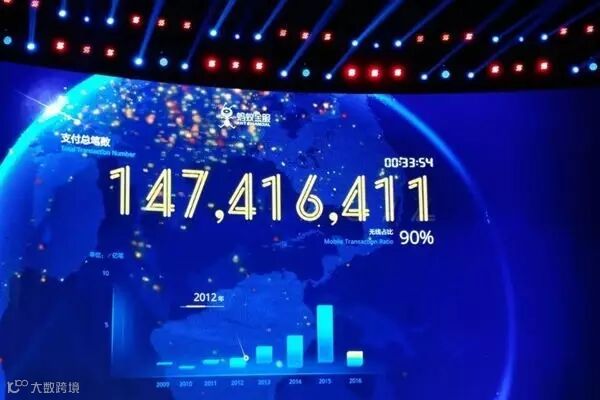 今年双11,支付宝前1小时的支付笔数,就超过了2013年双11全天的1.88亿笔。到了1小时06分,其支付笔数突破了2亿笔。1小时等于1天,这样的跳跃,相隔不过短短3年。发生翻天覆地变化的,还有支付方式。前1小时,支付宝的移动支付笔数占比达90%,国人的支付方式已经基本完成了从PC端到移动端的迁移,而在3年前,用手机付钱,对许多人来说,还相当陌生。截止12点,移动支付笔数超过了4亿笔,占比稳定在75%以上。