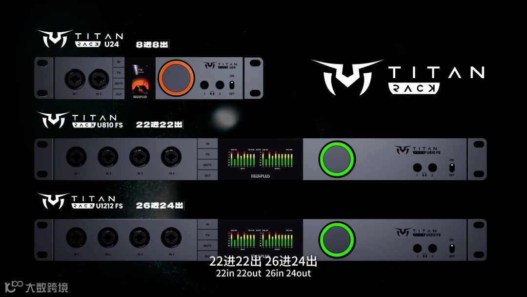 自Q6 rev2和Q3发布以来广受好评,成为高端直播领域和苛刻录音制作要求的新选择。今年,泰坦家族再添三名新成员:分别是U24、U810FS和U1212FS,8进8出、22进22出、26进、24出。