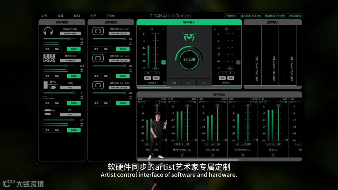 双光纤进出,AES/EBU进出、支持ADAT和SPDIF,双功耗模式,软硬件同步的Artist艺术家专属定制控制界面。配有彩屏,可切换显示内容,包括模拟动态VU表、电平。