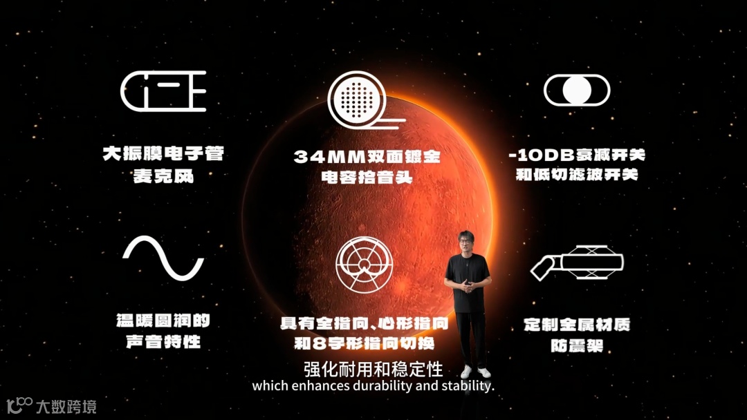 MIDIPLUS首款电子管大振膜麦克风系统。温润丰富、无论是人声还是乐器,都能精准捕捉声音细节,高灵敏34mm双面镀金 电容拾音头 强化耐用和稳定性。多重指向性可选:心形、全指向、8字形指向,灵活满足立体声拾音、单向拾音等多种录音场景。