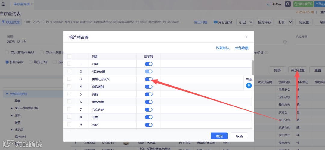 4、金蝶AI星辰,库存查询表上如何显示商品的属性、仓位、批次保质期?