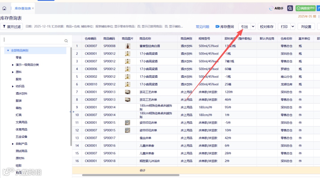 导出库存核对数据,或者其他需要,想知道在哪里操作导出。