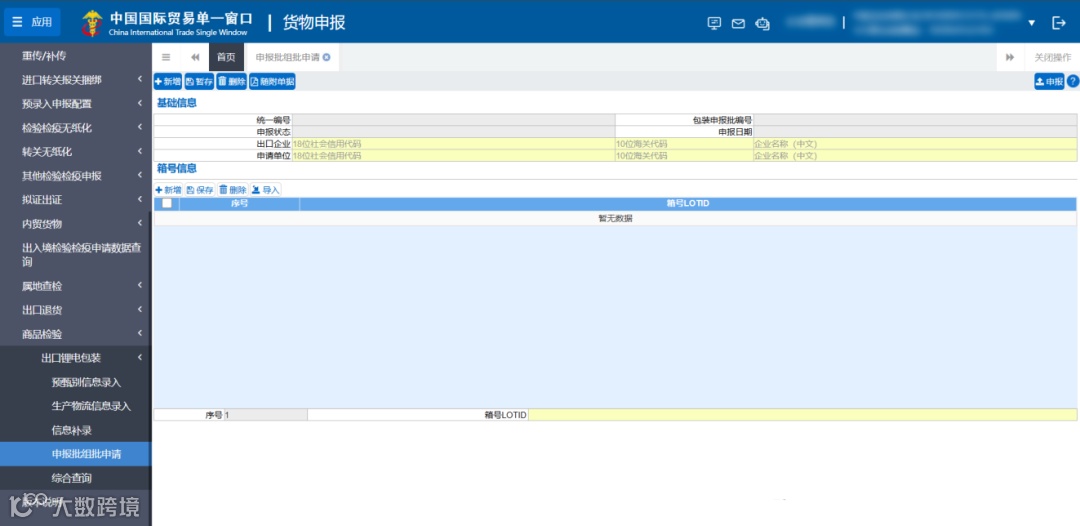 统一编号:返填,不可录入,暂存或申报成功后,系统自动生成。