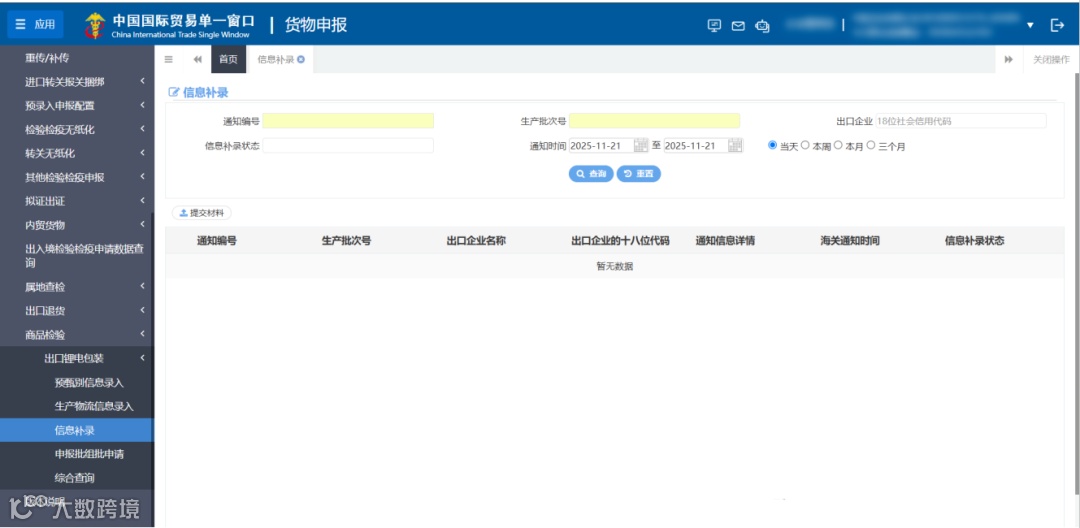 记录条号:返填,不可录入,海关审核通过后,系统自动返填。