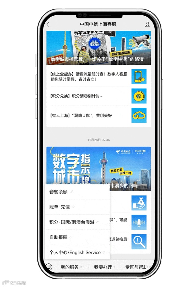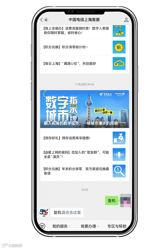 「中国电信上海客服」微信服务号