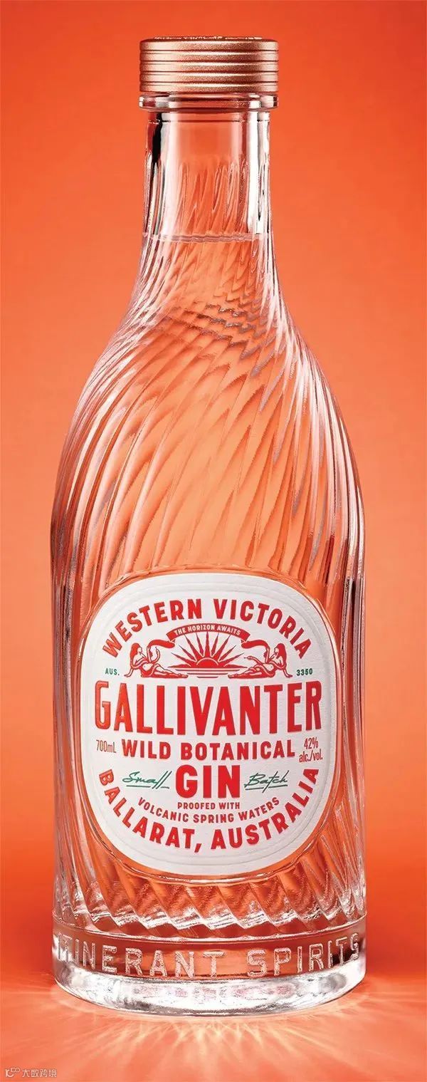 Gallivanter Gin专为冒险精神的旅行者量身定制,包装设计融合火山元素,采用红色搭配环状排版,增添柔和感。