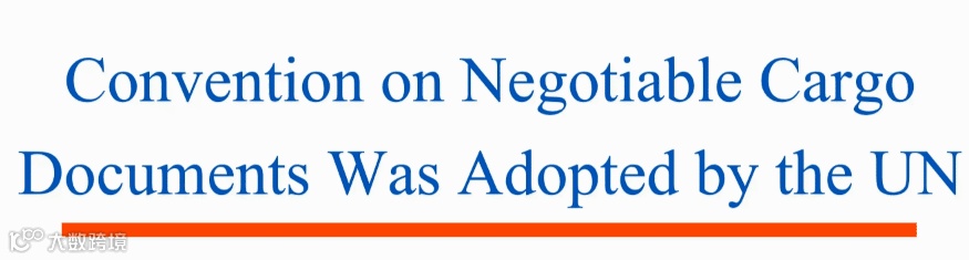 Transport documents issued by rail, road and air, such as consignment notes or air waybills, cannot be transferred to another party during transport, which also means cargo cannot be sold or transferred between parties in the process of transit. However, the new convention will establish negotiable cargo documents which can be applied across all modes of transport and only need to state on the bill of lading indicating that it is subject to the convention.