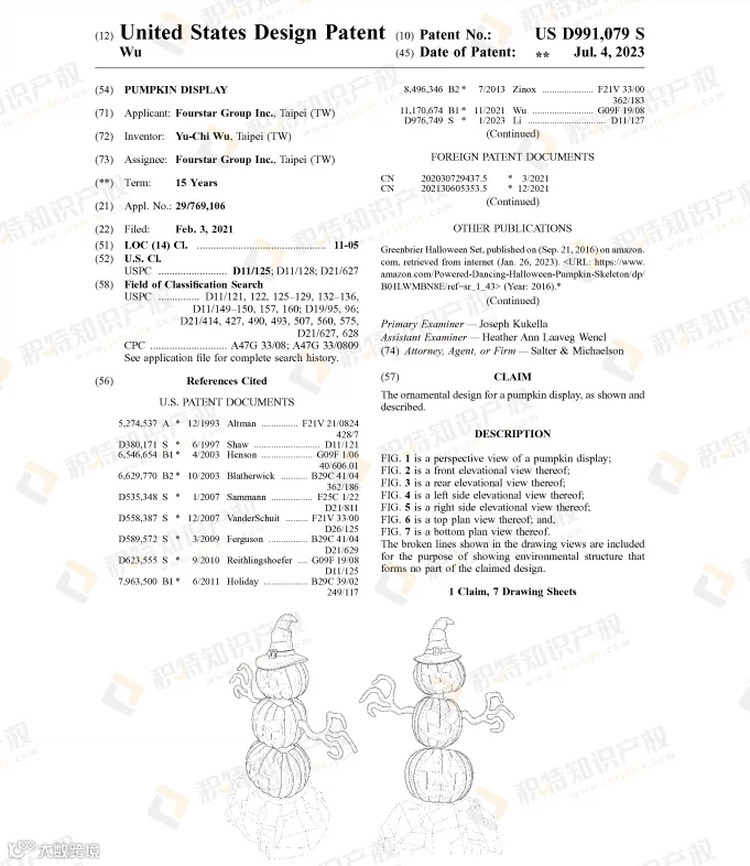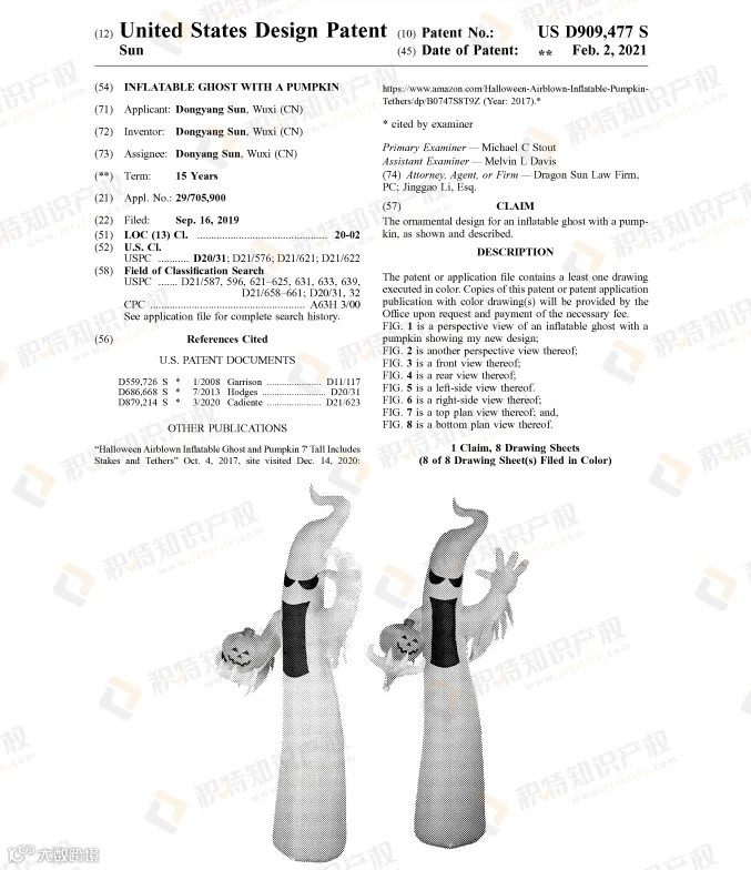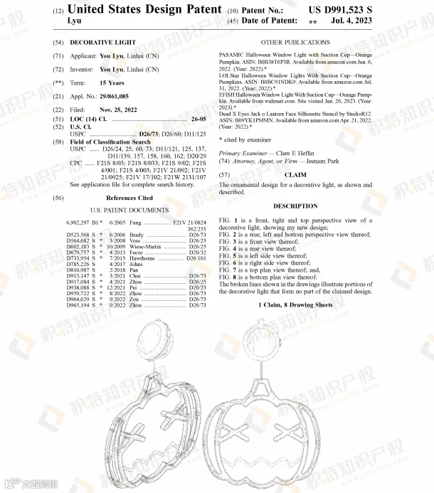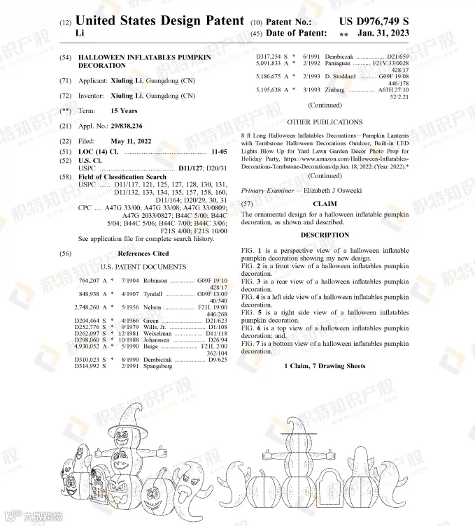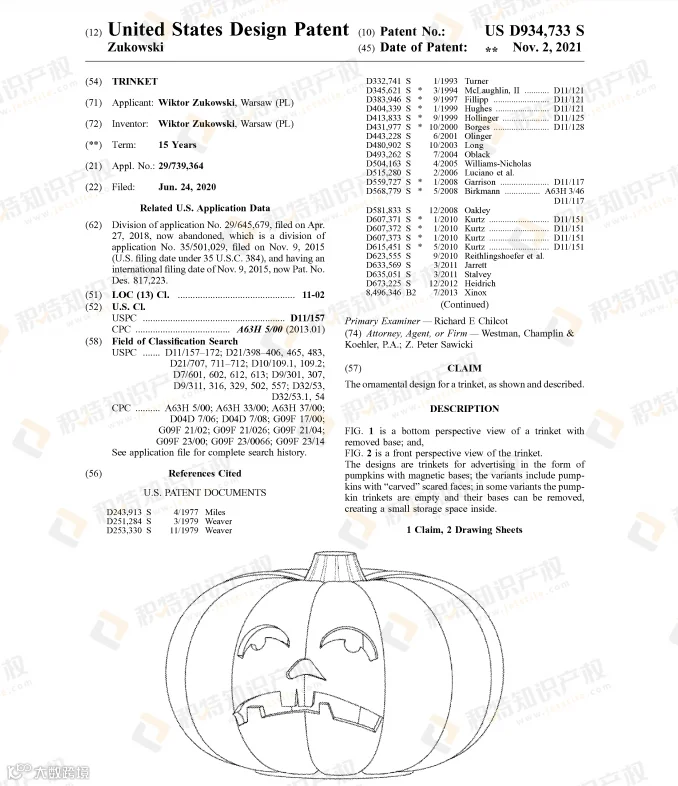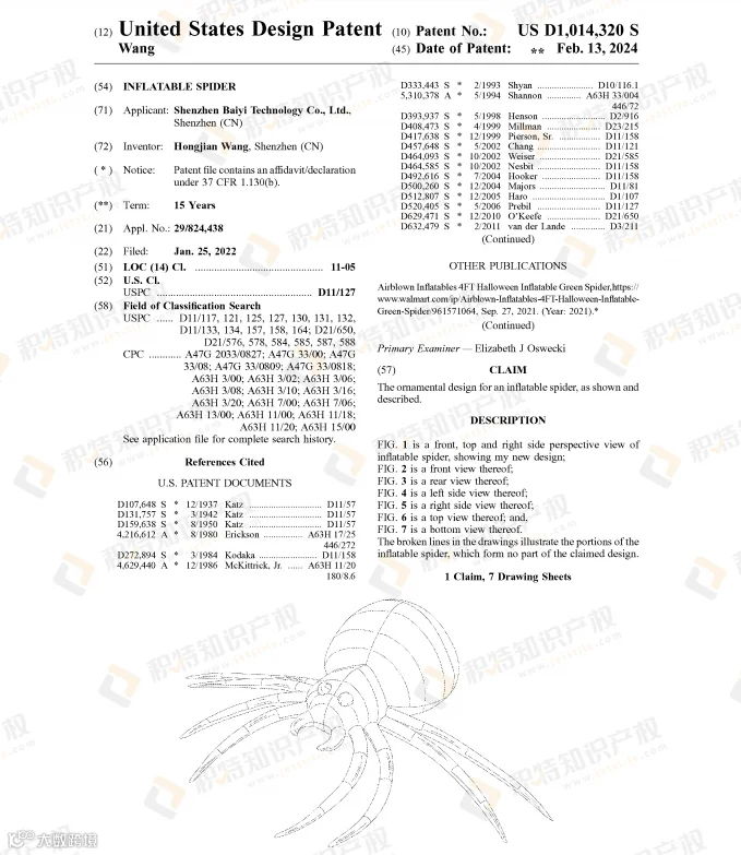 许多万圣节热销产品都已注册专利,稍不留神就会踩雷!今年就有多款万圣节相关产品专利下证,包括骷髅灯、充气蜘蛛、面具、南瓜装饰、南瓜形状馅饼模具、蜘蛛网装饰等。