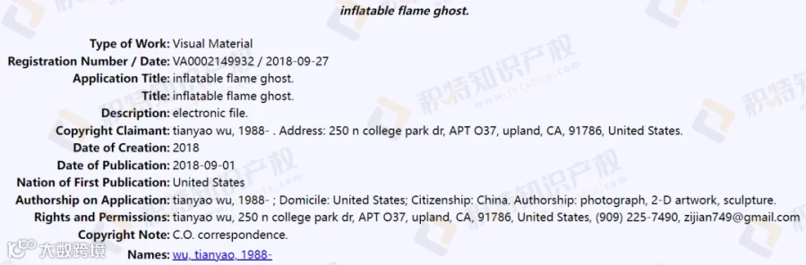 而该品牌还是版权注册大户,美国版权登记信息多达1000+,这也就意味着这款小夜灯极有可能存在版权侵权风险。