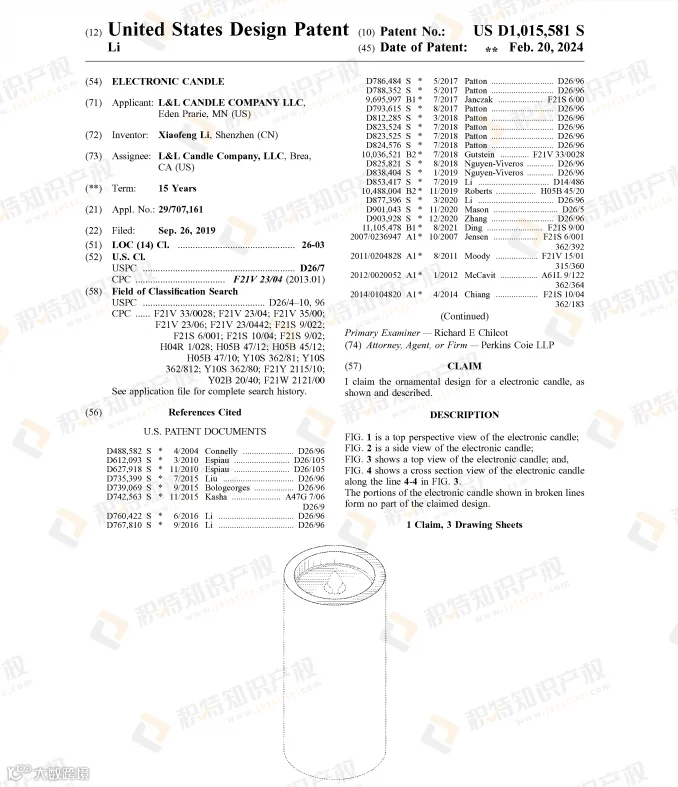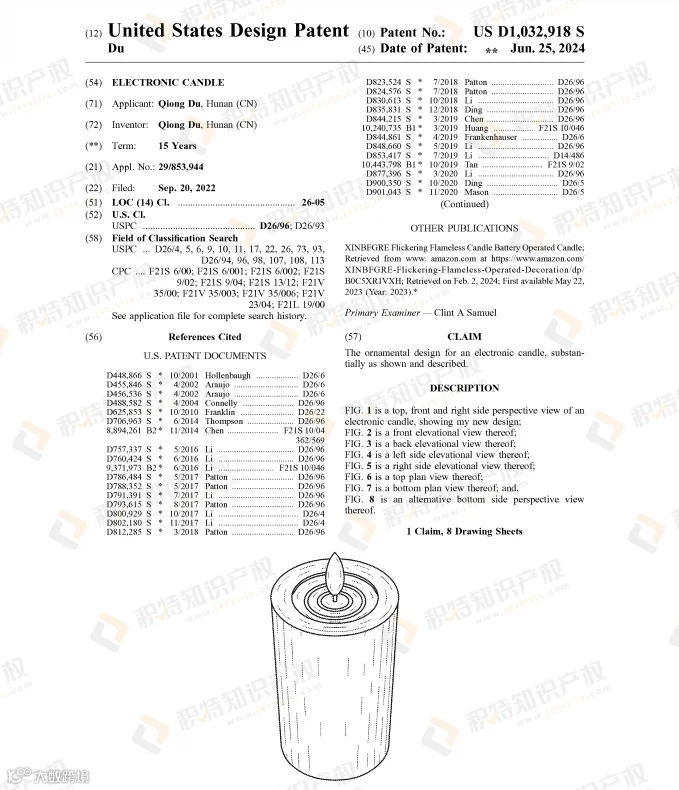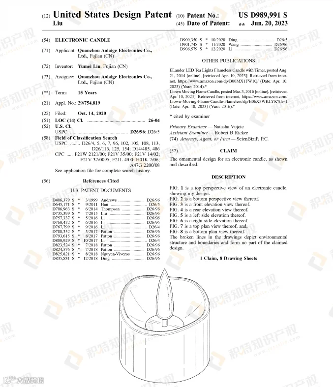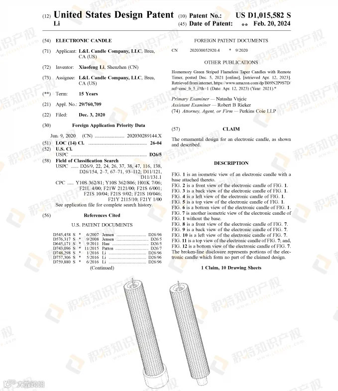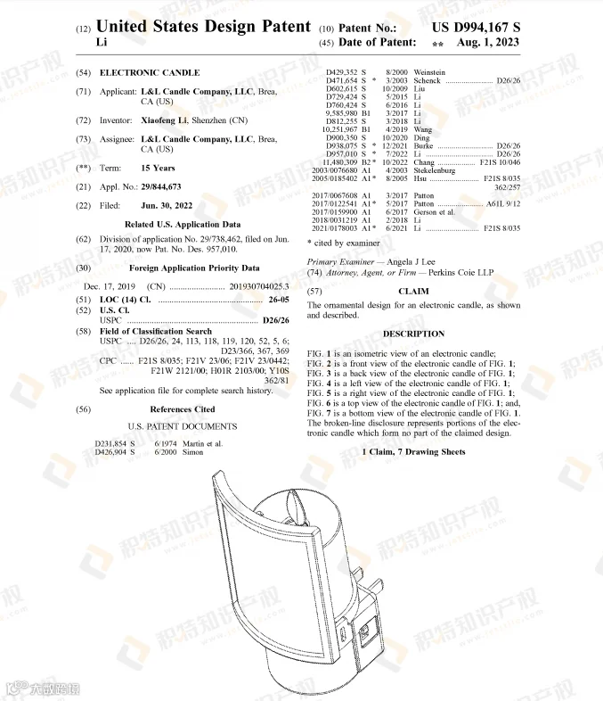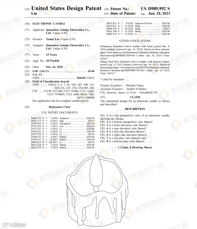 蜡烛本就是万圣节常见的装饰品,但由于存在火灾隐患和烟雾困扰,越来越多人选择无焰蜡烛灯代替。检索到的部分外观专利: