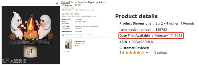 产品虽好卖,但却藏有侵权风险!查询发现,该产品看似是近期上架的新款,但其实早在2023年2月品牌ROMAN就已在亚马逊上架销售。