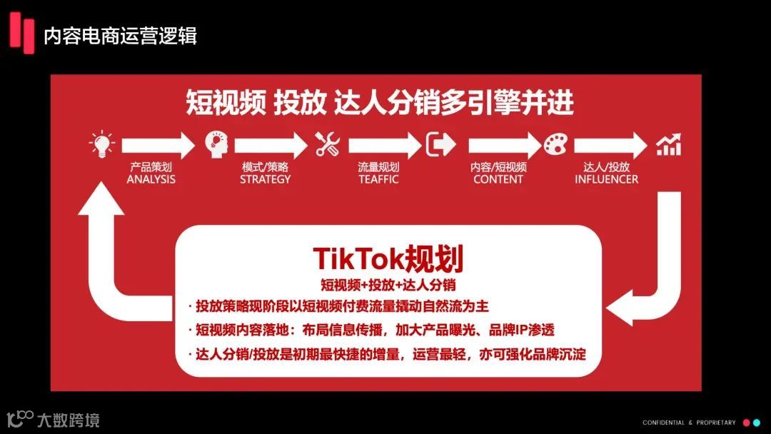 在流量获取方面,达人是一个核心来源,因为他们的流量基于内容,成本较低。在美国市场,核心达人能够轻松获得流量,因为美国的内容市场竞争并不激烈。此外,通过广告投放,我们可以探索新的可成交人群,发现新的流量池,提升竞争状态。