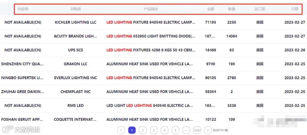 打开网站注册了之后,这个是有30次免费体验的机会,我们就利用这免费的30次机会来找客户,输入想要查找的关键词,我们以led lighting为例来找下客户资料看下(HS编码也可以)