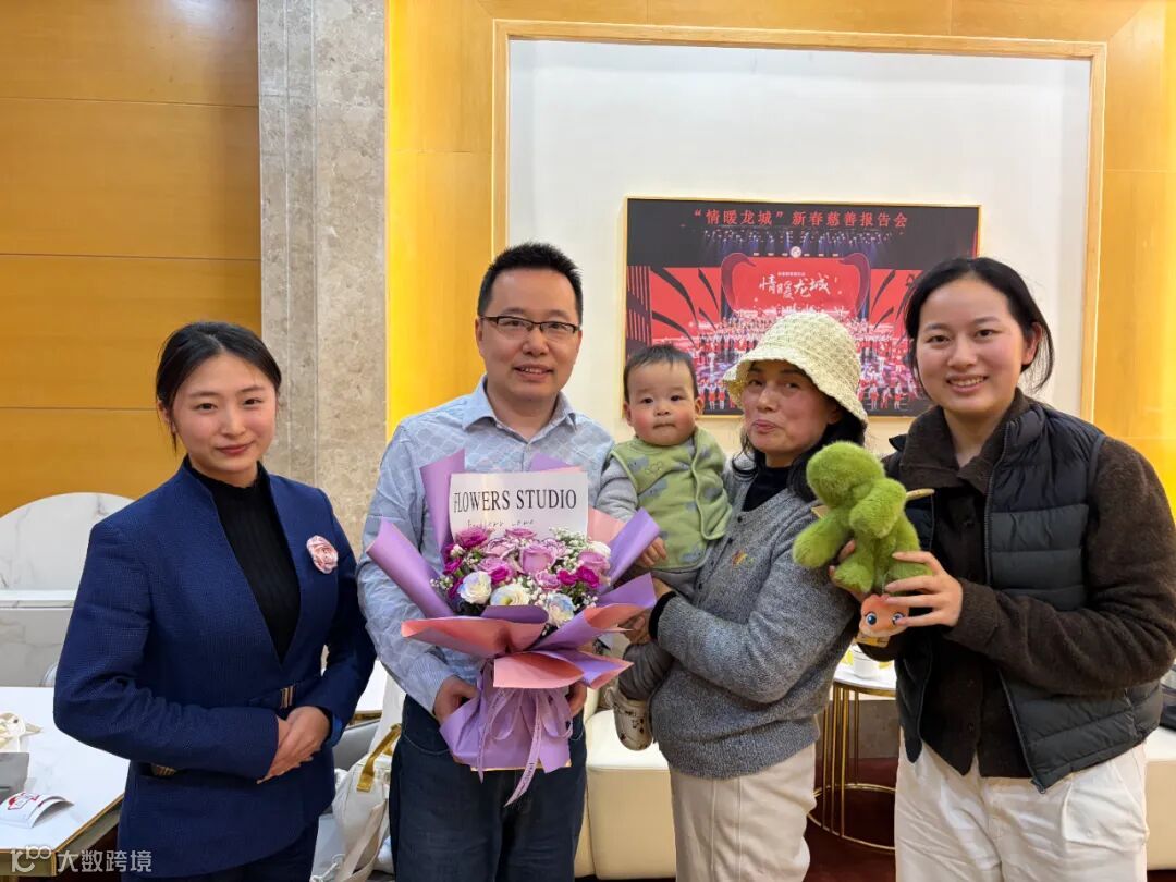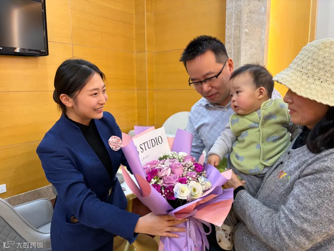 随着韩先生一家步入贵宾厅,工作人员不仅高效为他们办妥乘机与托运手续,也送上了这份精心准备的惊喜。韩先生拿着恐龙玩偶逗弄小宝宝,孩子新奇地望向玩偶,又好奇地摆弄花束包装,一家人笑容洋溢,眼中满是被人用心对待的感动与欢喜。