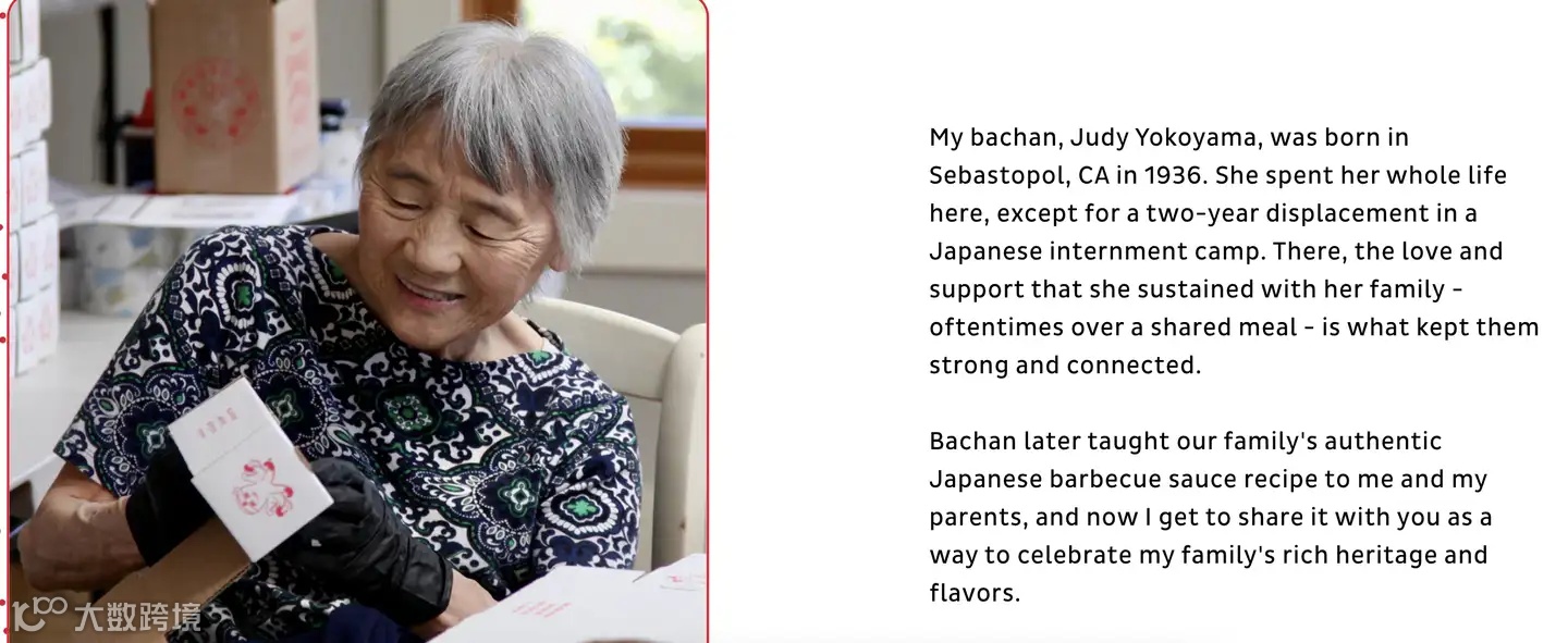 通过分享 Bachan’s的起源故事,Justin Gill在情感层面上与顾客建立联系,培养品牌忠诚度。不论是在亚马逊店铺主页,还是在品牌独立站,用户都可以清晰地看到他们的故事以及风味灵感的来源。