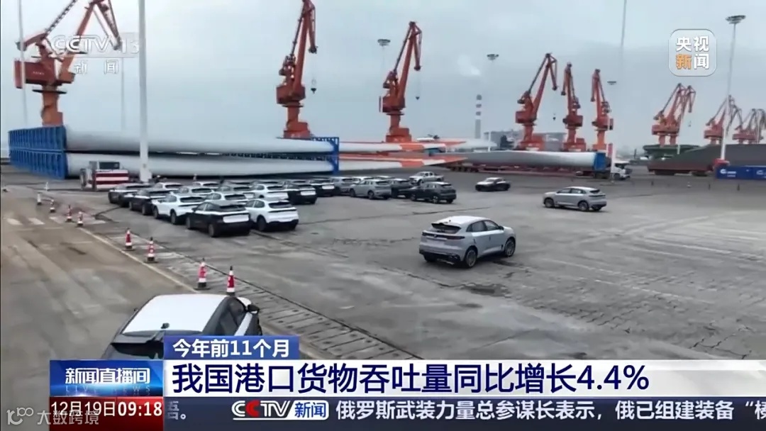 今年以来,我国港口运行态势良好,前11个月,货物吞吐量保持较快增长,同比增长4.4%。外贸航线网络持续拓展,叠加出口产品结构不断升级,为我国外贸高质量发展注入强劲动力。
