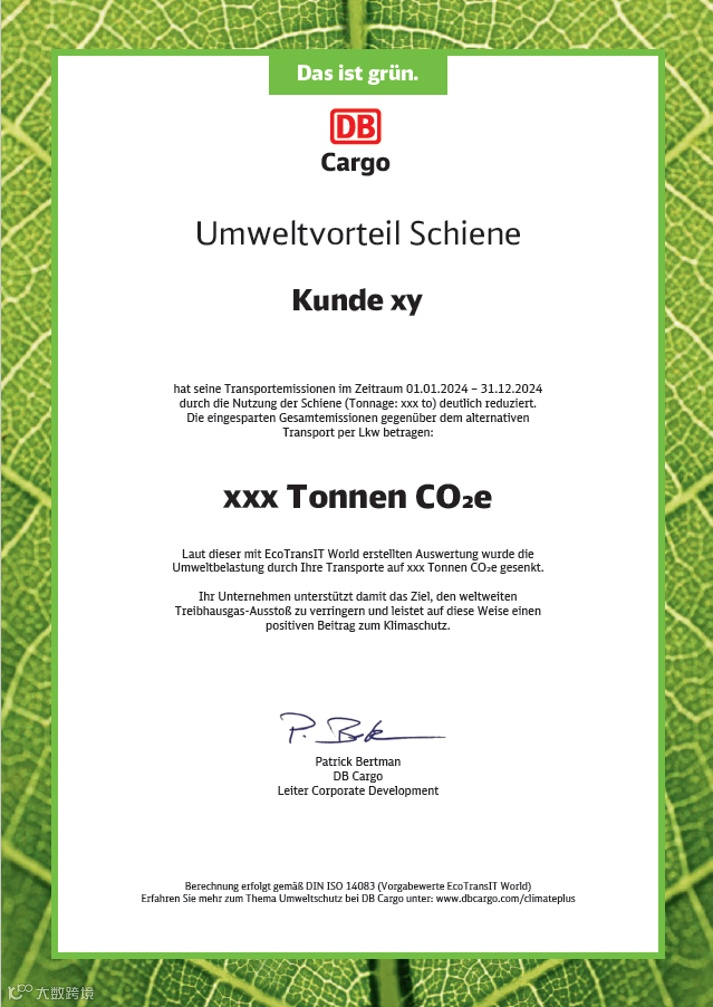 尽管铁路运输已是环保之选,但德国铁路货运仍在此基础上迈出更远一步 —— 气候+,确保您的货物实现二氧化碳当量净零排放。
