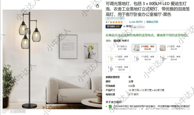 该产品于2020年10月26日在亚马逊平台上架(截至2024年7月18日)评分为4.6颗星,拥有6266条来自买家的评论。在【落地灯】商品排行榜中排名第27名。在过去的一个月,有2000+的顾客购买了该产品。是相对畅销的家居好物。