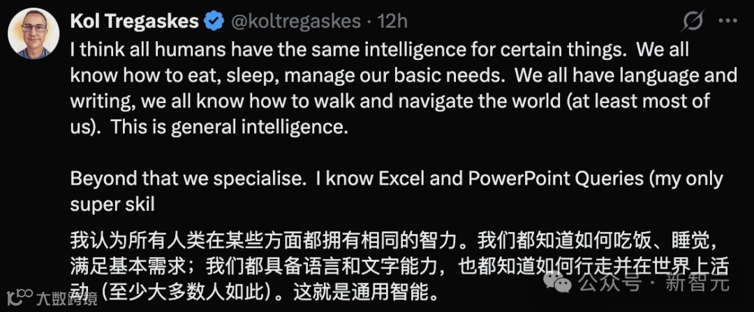 他认为LeCun混淆了「通用智能」(General Intelligence)与「普适智能」(Universal Intelligence)的概念,忽略了一个核心事实——人类大脑本身就是高度通用的系统,尽管它在具体任务上并非最优。