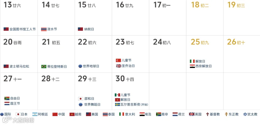 全球视野:50+国家节日表