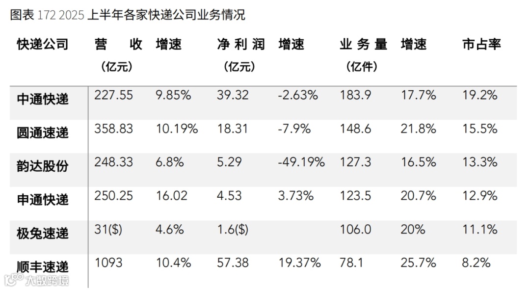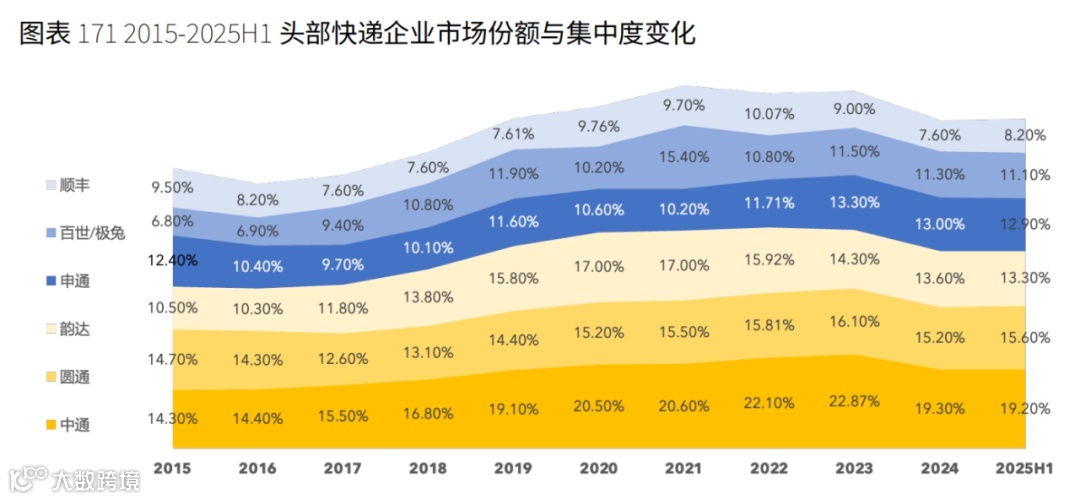 2024至2025年上半年,前六家快递企业合计市场份额稳定在80%,行业仍处于存量竞争阶段 [3] 。