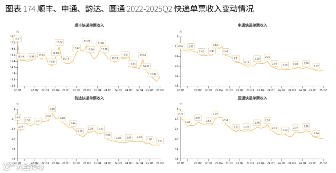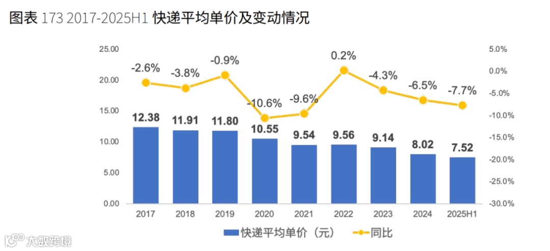 2025年上半年,头部快递企业业务量创同期新高、收入稳健攀升,但净利润普遍下滑,单票收入集体跌破近三年新低:中通、韵达、申通二季度单票收入已低于2元;顺丰、极兔单票收入分别下滑12.2%、11.8%。“量增利减”“量价倒挂”问题突出,义乌、广州、深圳等地快递底价已跌破1元 [4] 。