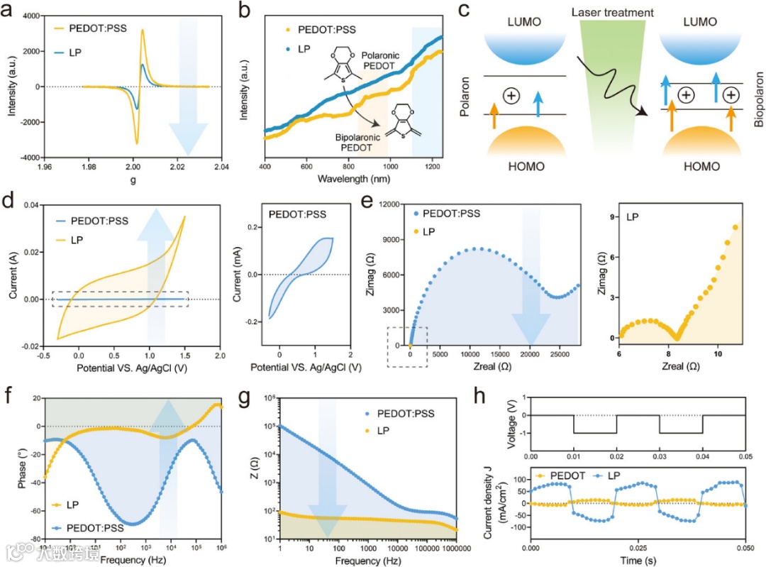 图4:未处理PEDOT:PSS与LP水凝胶的电化学性能