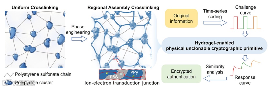 图1. 基于水凝胶的物理不可克隆加密单元的概念设计示意。