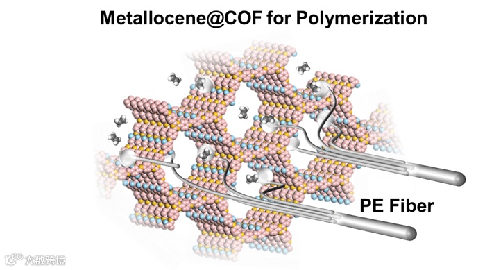 聚烯烃长期以来主导着材料技术和聚合物生产,同时增强高性能聚烯烃中的机械强度、韧性和可加工性仍然是一个挑战。工业常用的高填充改性(>10 wt%)会使熔体黏度急剧升高1~3个数量级,加工需更高温度或高剪切力;同时填料/基体界面易产生应力集中,诱发迁移与团聚。作为载体的传统无机材料(如SiO2、Al2O3、MgCl2)往往尺寸与孔结构不均、表面化学复杂,导致单活性位催化剂(如茂金属)位点分化、活性与产物分子量下降且分布变宽。因此,亟需在低填充下兼顾界面与加工的新路径。近期,浙江大学刘平伟、史胜斌团队报道了一种共价有机框架(COF)配位的茂金属催化剂,用于乙烯原位聚合促进聚乙烯(PE)链纳米限域生长,构筑具有独特纳米纤维结构的高性能COF-PE复合材料。