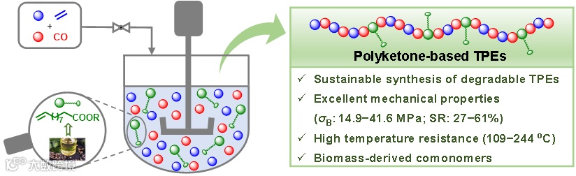 综上,该研究利用镍催化烯烃羰化聚合技术,成功将生物质衍生单体引入至聚酮主链,开发出一系列力学性能优异、耐热性好且可降解的新型热塑性弹性体(TPE)。该研究为解决传统聚烯烃弹性体难以降解的环境问题提供了一种新方案,展现出在可持续材料领域广阔的应用前景和产业化潜力。