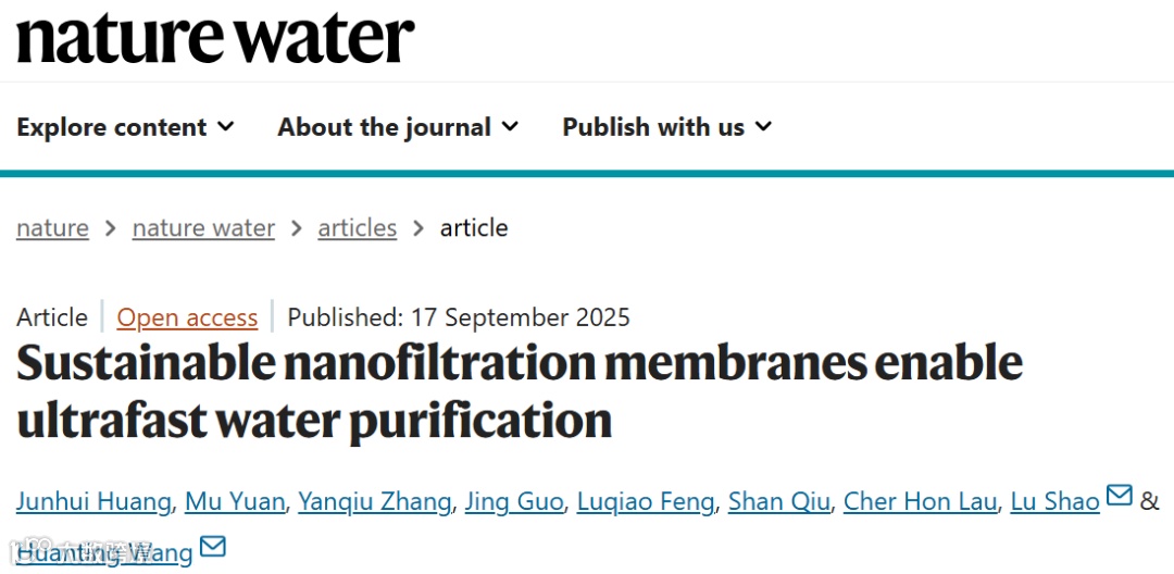 这一研究成果首次实现了纳米限域膜制备安全、天然降解与超高性能的有机统一,提出了膜材料全生命周期绿色设计的新范式。SNFM的成功构筑不仅为水处理技术的可持续发展提供了新路径,也为实现“双碳目标”和生态环境保护注入了新的动力。未来,该成果有望广泛应用于污水治理、饮用水净化以及工业水循环利用等领域,对推动绿色低碳社会建设具有重要意义。