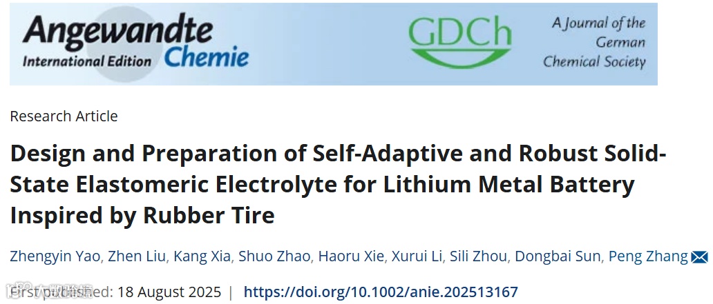 该工作以“Design and Preparation of Self‐Adaptive and Robust Solid‐State Elastomeric Electrolyte for Lithium Metal Battery Inspired by Rubber Tire”为题发表在《Angewandte Chemie International Edition》上(DOI: 10.1002/anie.202513167)。文章第一作者为中山大学博士后姚正银,张鹏副教授为通讯作者。该研究得到了国家自然科学基金、国家重点研发计划及广东省自然科学基金等项目的支持。