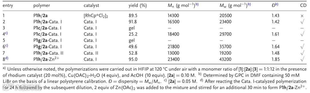 图5 不对称催化的C-H活化/环化聚合反应结果