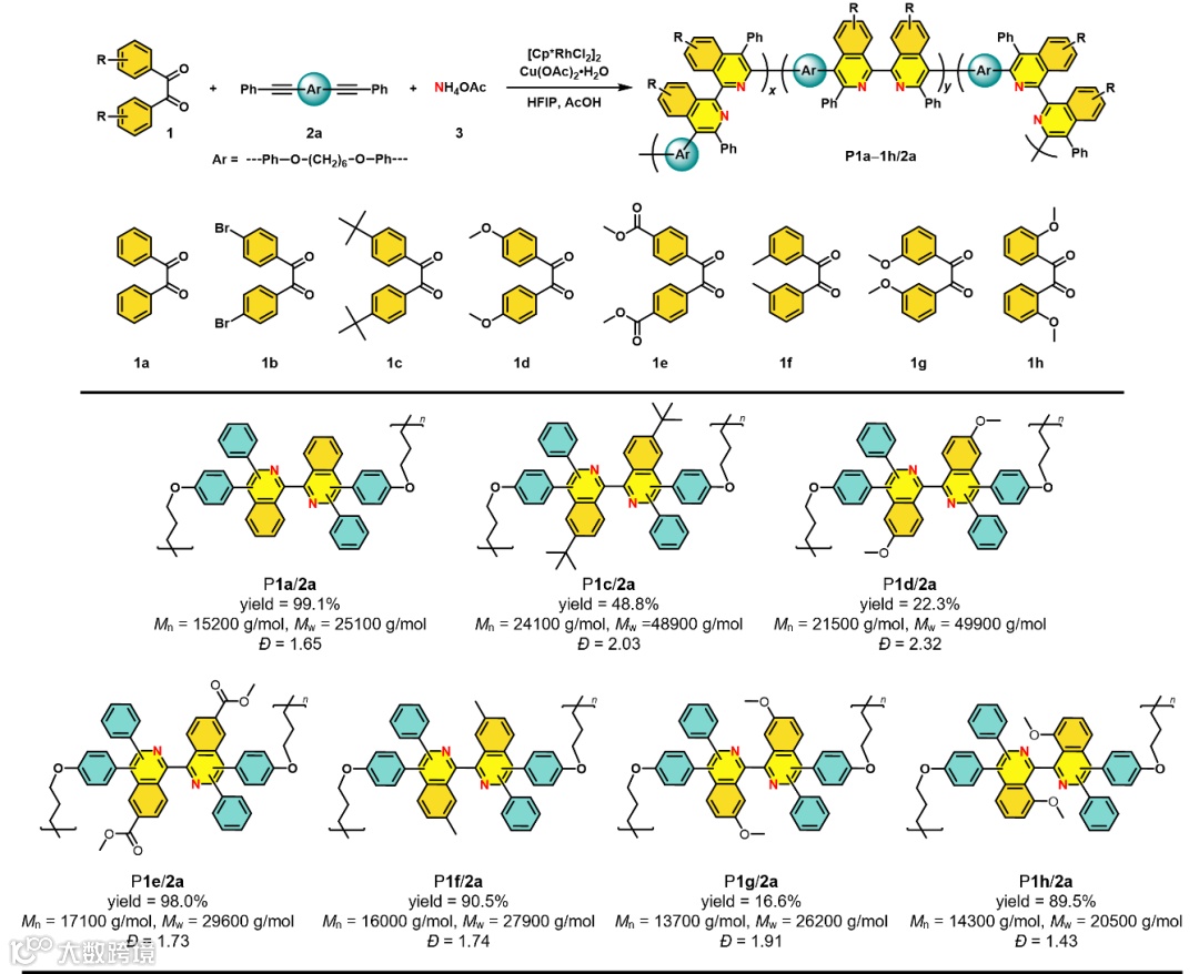 图2 不同苯偶酰单体的多组分C-H活化/环化聚合结果