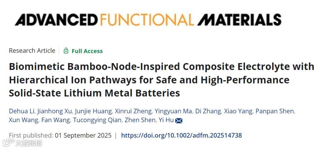 随着智能纺织和可穿戴电子设备的迅猛发展,如何将高性能的能源存储单元柔性化、集成化,已成为纺织材料与能源科学交叉领域的前沿课题。传统的硬质液态电池难以满足织物在弯曲、折叠甚至拉伸状态下的性能需求。近日,浙江理工大学纺织科学与工程学院(国际丝绸学院)胡毅教授团队,从天然竹子的结构中汲取灵感,成功开发了一种仿生竹节结构复合固态电解质。这项创新性研究将纤维结构与电池电解质巧妙结合,为柔性可穿戴储能提供了全新的解决方案。该成果以《Biomimetic Bamboo-Node-Inspired Composite Electrolyte with Hierarchical Ion Pathways for Safe and High-Performance Solid-State Lithium Metal Batteries》为题,在国际权威期刊《Advanced Functional Materials》(影响因子19.0)上发表。论文第一作者为浙江理工大学纺织科学与工程学院(国际丝绸学院)博士研究生李德华,通讯作者为浙江理工大学博士生导师胡毅教授。