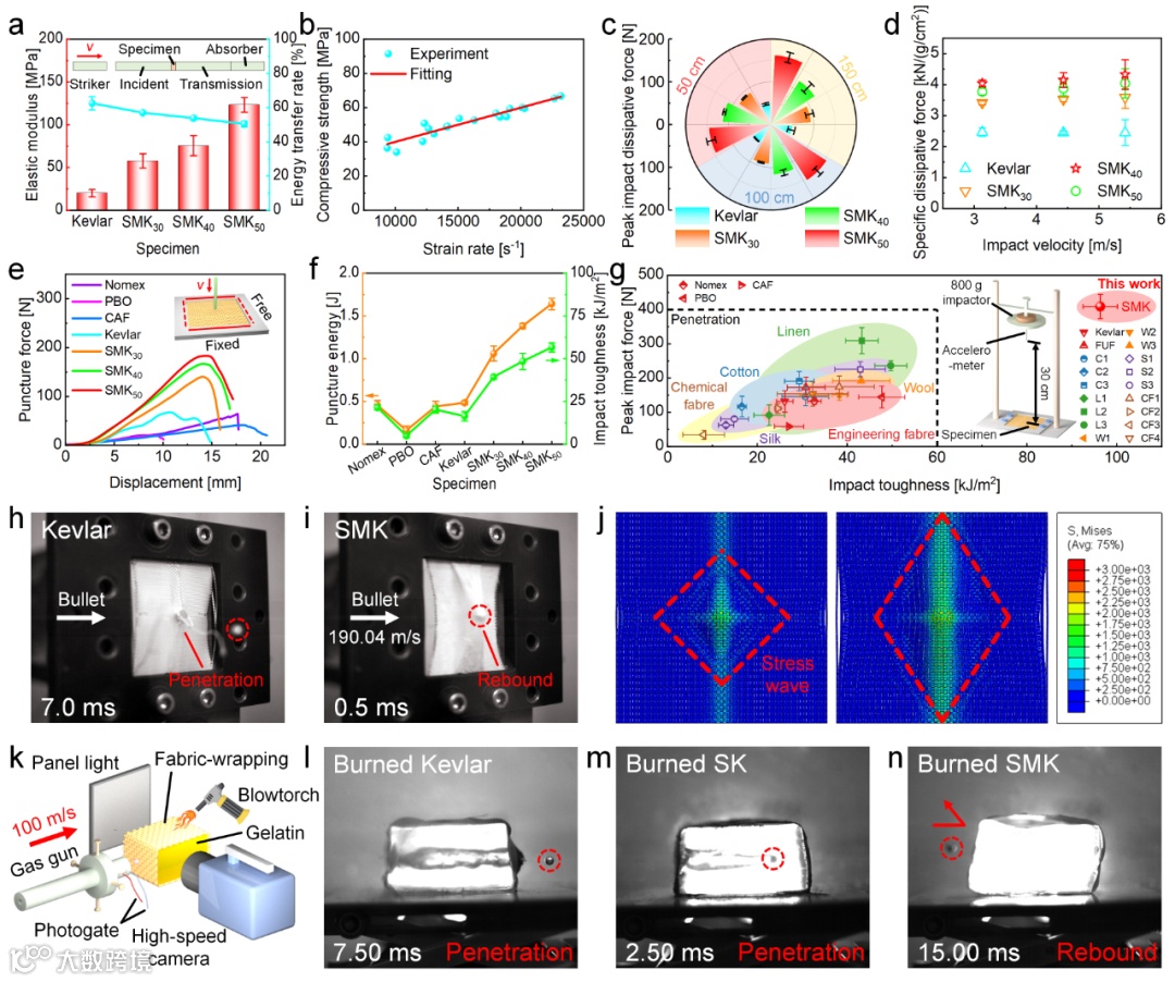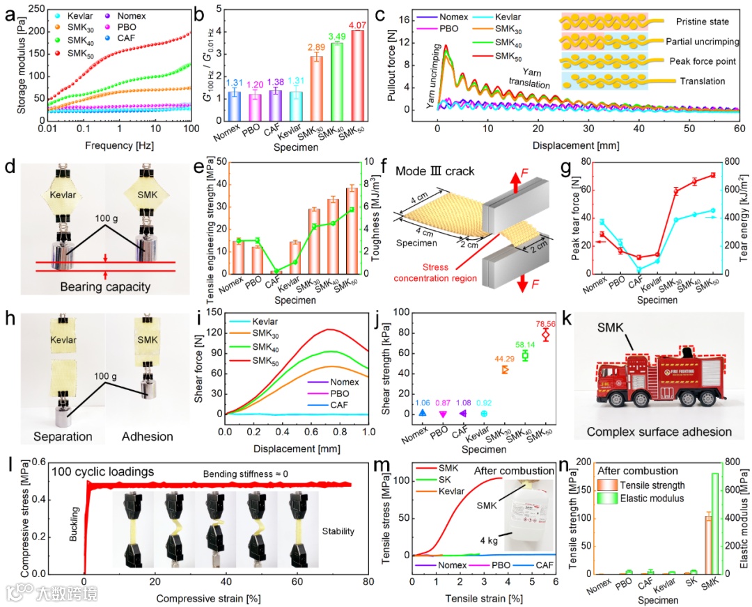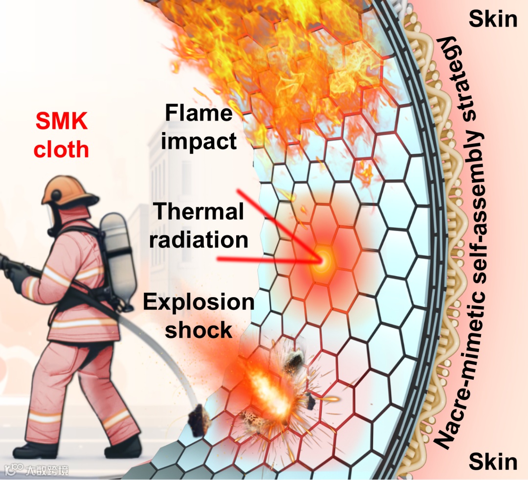 频繁发生的火灾事故对消防员的安全构成了严重威胁,这一现实问题要求消防防护材料不断提高性能以满足消防工作需要。受贝壳珍珠母微结构的启发,本研究提出了一种异质自组装策略。该策略以氢氧化镁为砖、剪切变硬胶为泥,二者形成“砖泥结构”附着于芳纶织物表面,使其具备优异的抗冲击和阻燃能力。这展示了一种全新的生产策略,不仅提高了普通织物的力-热耦合性能,还为其在工业应用中提供了可能性。