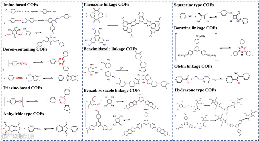 图3.用于合成COF的不同连接键。