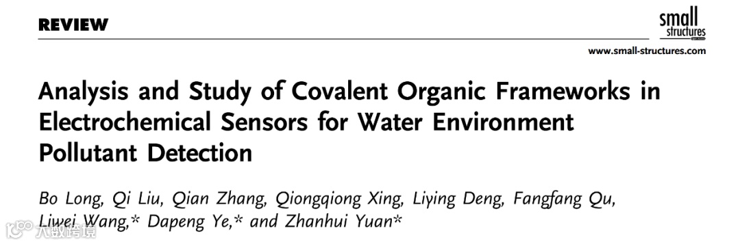 近日,福建农林大学龙博副教授/袁占辉教授团队在《Small Structures》(JCR 一区 IF:13.9)期刊发表了论文。该研究以《Covalent Organic Frameworks in Electrochemical Sensors for Water Environment Pollutant Detection: Analysis and Study》为题,系统地综述了共价有机框架材料(COFs)在水环境污染物电化学传感检测领域的应用进展。