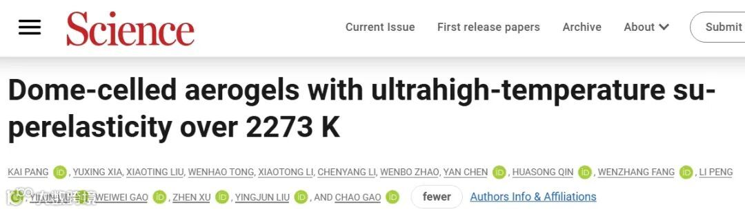 这一突破,源于一种全新的气凝胶构筑方法——氧化石墨烯基二维通道受限发泡法。这是一种简便且通用的制备方法。团队采用这一路线制备了数百种气凝胶,它们具有独特的隔热能力和高弹性,有望在深空探测器、超音速飞行器、核聚变装置中提供热防护。相关研究论文“Dome-celled aerogels with ultra-high-temperature superelasticity over 2273 K”2025年7月17日发表于Science杂志。